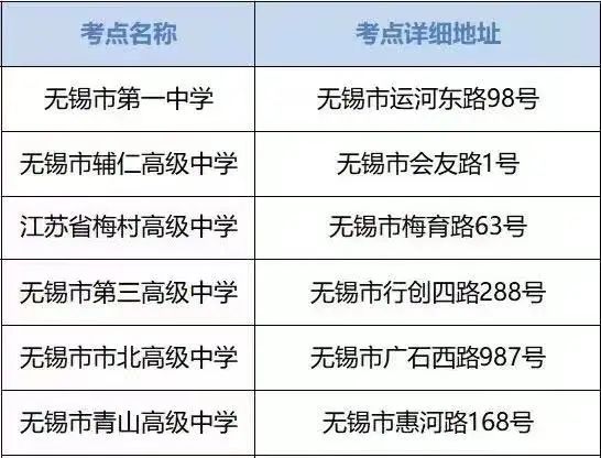 无锡市2023年高考考点安排